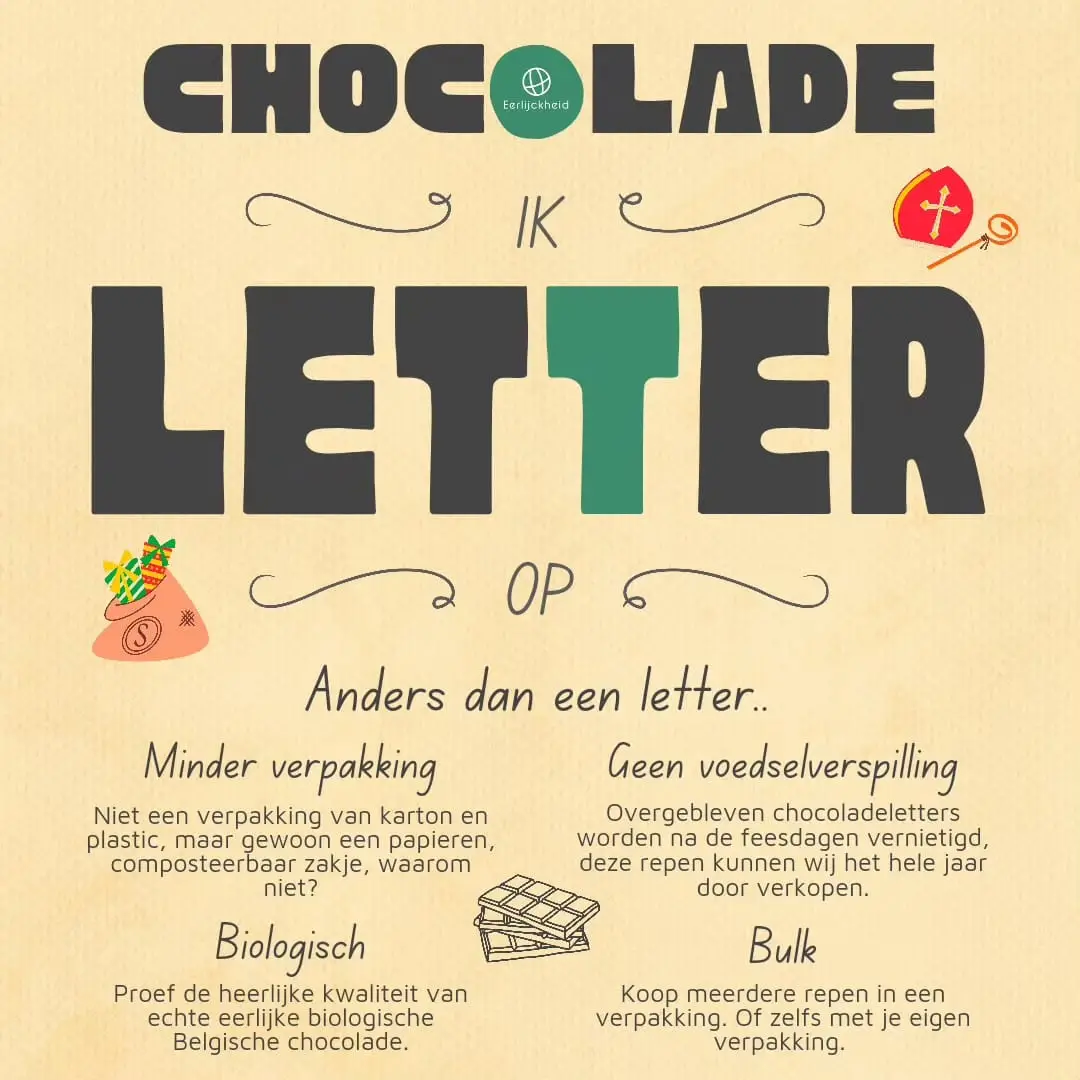 Duurzame chocolade “letters” voor ieder gezelschap.